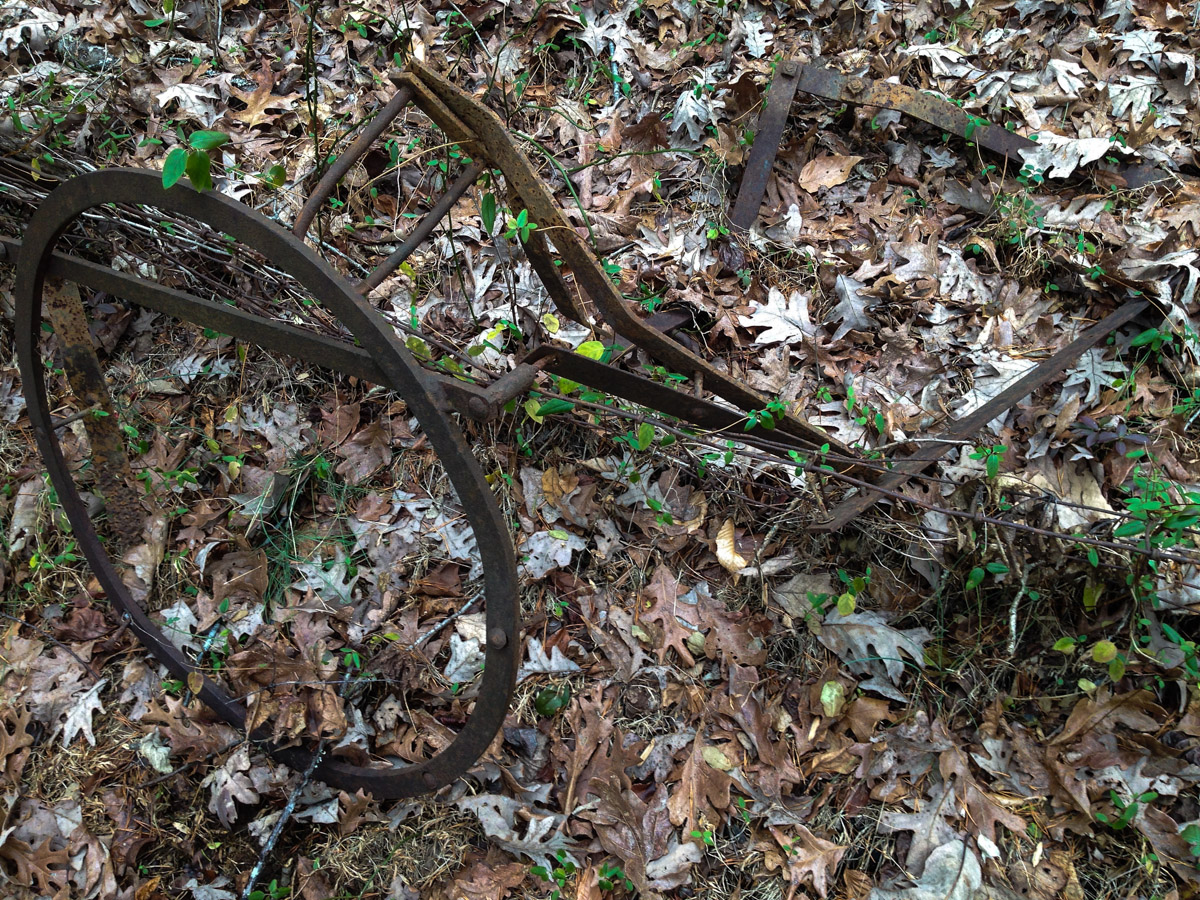 Today, part of the land previously owned by the Broadhead, Mundy, Etherton, and Birckhead families is wooded with many walking trails that criss-cross the area. This piece of equipment, of unknown age, is visible along one of those trails.