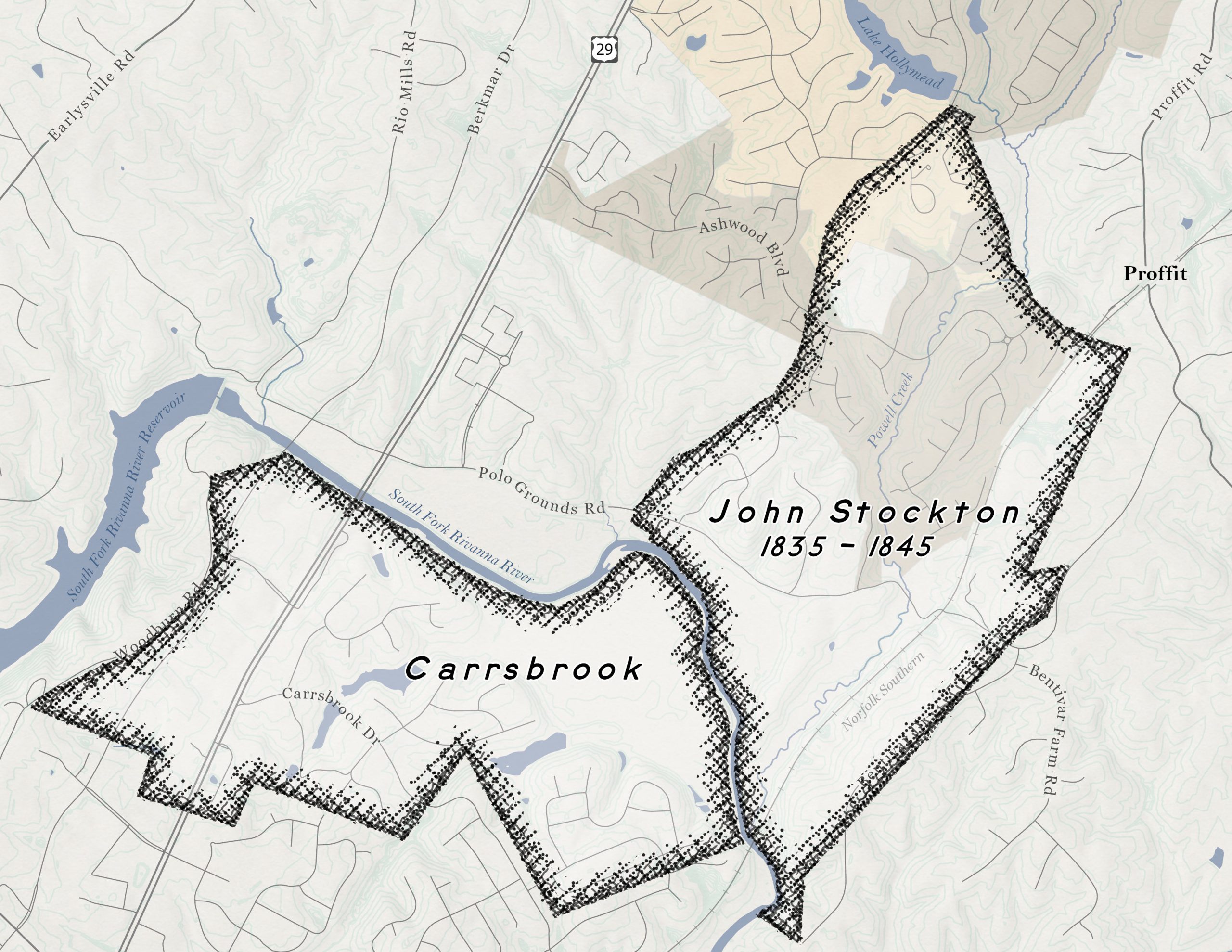 When he made his purchase, Stockton already owned the Carrsbrook estate on the opposite side of the Rivanna River. Stockton was born in New Jersey but his family had deep connections to Albemarle County. He was a businessman who ran a stage coach company with routes centered in Charlottesville. Stockton died on May 25, 1837 when he drowned in Mobile Bay, Alabama.
